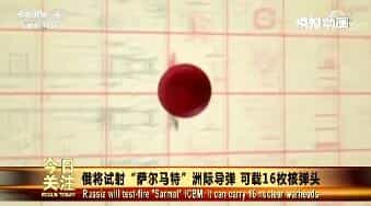 本期节目主要内容:俄将试射“萨尔马特”洲际导弹,可载16枚核弹头;“萨尔马特”最早将于2019年入役;俄美今年频繁试射洲际弹道导弹。普京表示个别大国处理国际事务表现自私,双重标准,若美退《中导条约》,俄将对等回应。俄称美对拉卡进行“地毯式”轰炸。