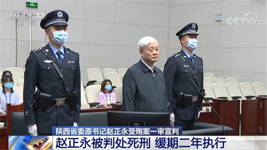 央视网消息:天津市第一中级人民法院今天(31日)公开宣判第十二届全国人大内务司法委员会原副主任委员、中共陕西省委原书记赵正永受贿案,对被告人赵正永以受贿罪判处死刑,缓期二年执行,剥夺政治权利终身,并处没收个人全部财产,在其死刑缓期执行二年期满依法减为无期徒刑后,终身监禁,不得减刑、假释。赵正永当庭表示服从法院判决,不上诉。