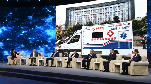 主持人:现在我要给大家看一张照片,这张照片背后也有一个动人的故事。这是一辆ICU紧急救护的救护车,它有一个很好听的名字叫“贵商总会·通源号”。这辆救护车是臧总他们来捐赠的,当时为什么要捐赠这么一辆救护车呢?