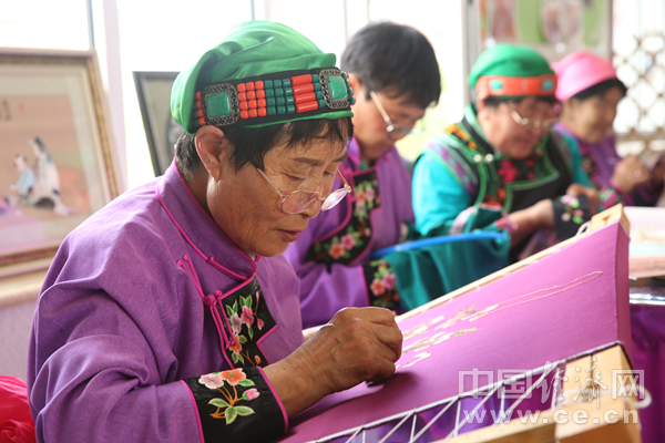 萨日朗巾帼民族手工艺品专业合作社的绣娘正在绣花。(经济日报-中国经济网记者 张相成/摄)