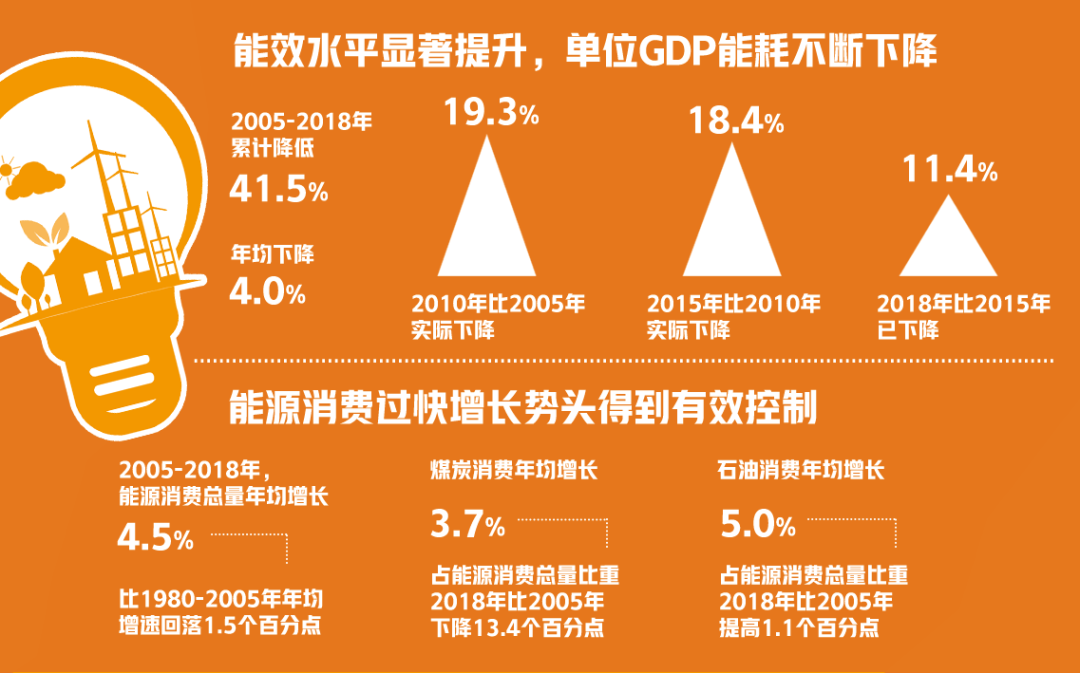 中国工业化、城市化进程正处于加速阶段,需要大量高能耗、高物耗的原材料生产与消费。2000年我国水泥产量不足6亿吨,2011年以后产量连年超过20亿吨,但2018年每吨水泥综合能耗却比2000年减少了四分之一,同时水泥生产还焚烧处理了城市生活垃圾、消纳了工业废渣,不仅实现了资源循环利用,还消除了固废污染物,减少了填埋占地。2019年,我国电力非化石能源装机和发电量分别占总量的41.9%和32.6%,2.4万亿千瓦时电力是零碳零排放的,超过日本和俄罗斯两国发电量之和。