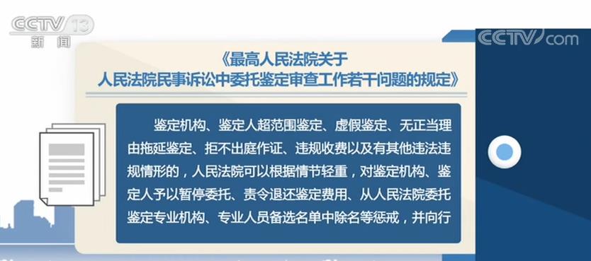 央视网消息:《最高人民法院关于人民法院民事诉讼中委托鉴定审查工作若干问题的规定》今天(14日)发布(以下简称《规定》),明确将建立鉴定人黑名单制度,鉴定机构、鉴定人出现虚假鉴定、违规收费等情形可列入黑名单。