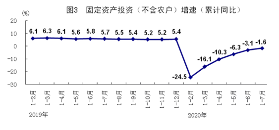 1-7月份,全国固定资产投资(不含农户)329214亿元,同比下降1.6%,降幅比1-6月份收窄1.5个百分点;7月份环比增长4.85%。