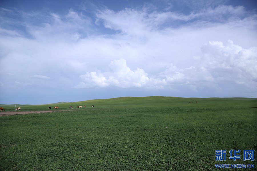 8月的呼伦贝尔草原一碧万顷。新华网记者 焦鹏摄