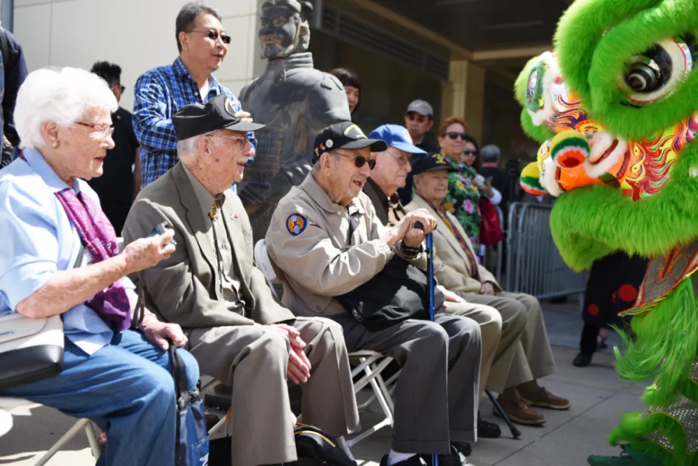 2019年5月10日,在美国拉斯维加斯,“飞虎队”老兵出席2019年中美文化旅游节开幕式。新华社发