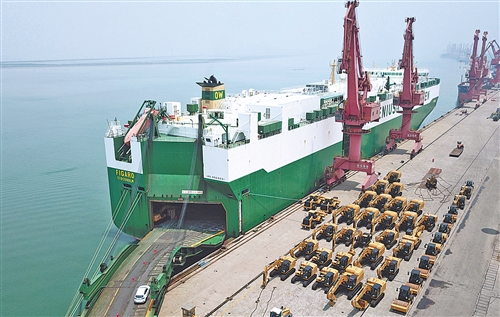 6月19日,江苏连云港港,一艘滚装船正在装载一批出口海外的货物。在减税降费等多项政策支持下,我国外贸企业抓住机遇复工复产,加快“走出去”步伐。耿玉和摄(中经视觉)
