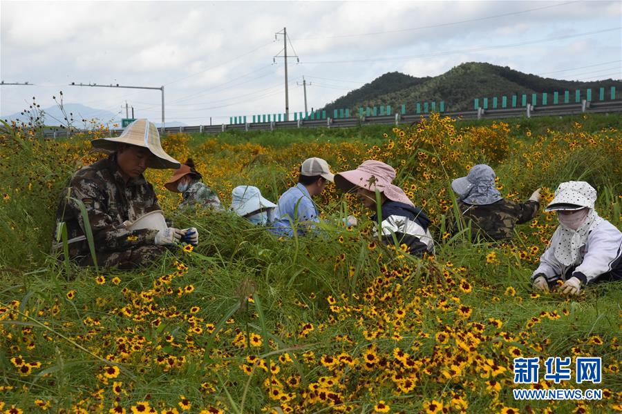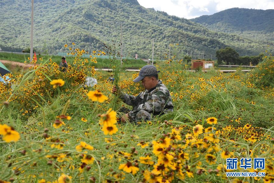 近日,在南岔县的一处中草药种植基地,雪菊迎来了收获季,刘天友与40多名同事一起坐在雪菊组成的花海里摘花。这些花将被制成各种中药产品。