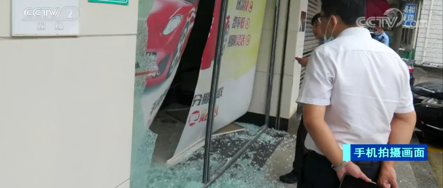 央视网消息:近日,在广东东莞塘厦,一辆小车突然撞破路边玻璃墙,一头冲进了银行营业大厅里。监控画面记录了当时的情况。