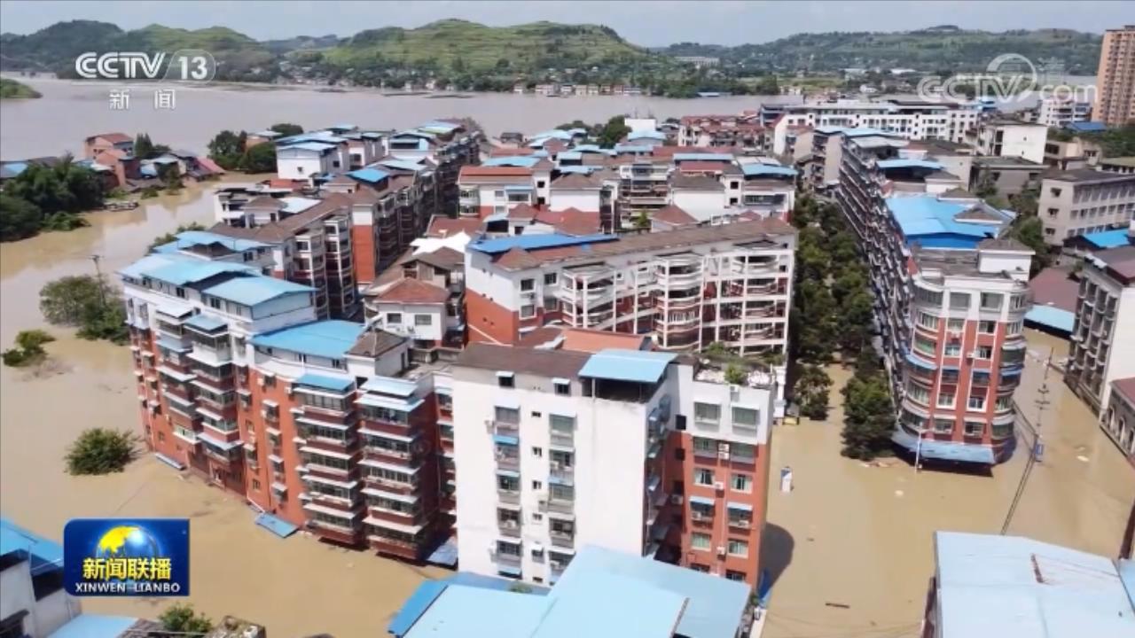 持续强降雨还造成绵阳安州区多个乡镇被淹,群众被困。在塔水镇团结村,救援人员乘坐橡皮艇挨家挨户进行搜索。