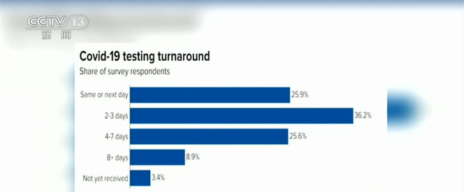 央视网消息:自疫情暴发以来,美国检测能力不足、检测周期过长的问题一直饱受诟病。有美国公共卫生专家指出,新冠病毒检测只有在两到三天以内反馈结果,才能起到控制疫情传播的作用。然而,根据美国媒体的一项最新调查,40%的美国民众要等待超过三天才能收到自己的新冠病毒检测结果。