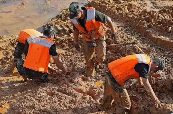 搬沙袋、垒围堰、填沙石、压泡泉……