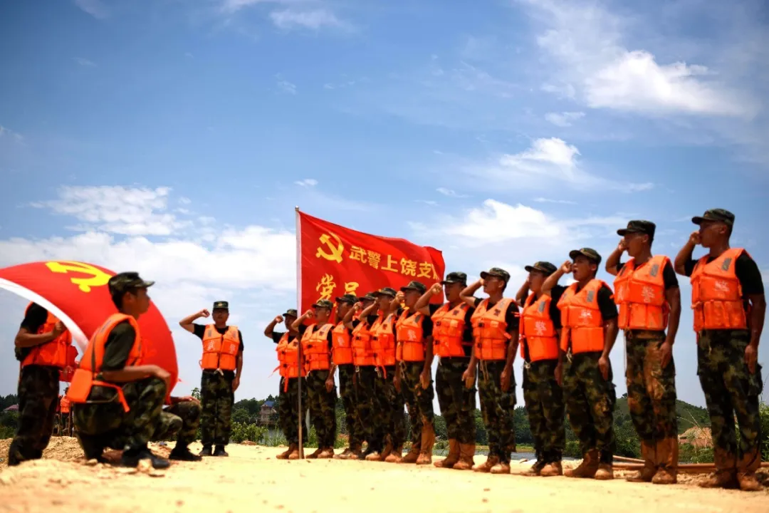来到鄱阳湖大堤参加抗洪抢险救灾