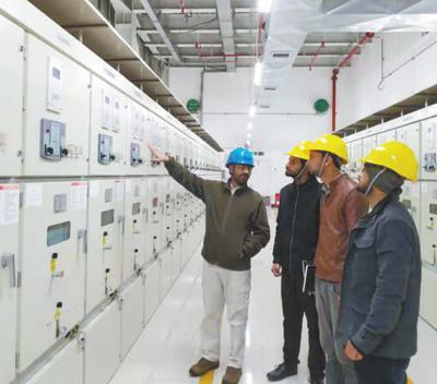 在位于巴基斯坦旁遮普省的萨希瓦尔燃煤电站,第二期大学生电力生产认知实习培训班学员正进行参观学习。