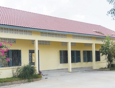 走进校园,一栋红瓦黄墙的H形连体平房映入眼帘。三间宽敞明亮的教室里,传出琅琅书声。教学区连接着宿舍区,17间教师宿舍分列教室两侧。这栋崭新的平房校舍是由上海建工集团股份有限公司(简称上海建工)捐建的。特莫波县初中校长索康告诉记者,上海建工为柬埔寨修建了58号公路,完工后将项目部旧址改建成校舍,捐赠给学校。