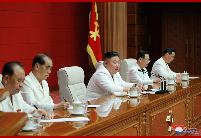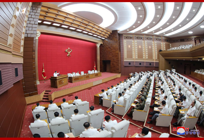 金正恩宣读了朝鲜劳动党第七届中央委员会第六次全体会议关于召开朝鲜劳动党第八次代表大会的决议草案。