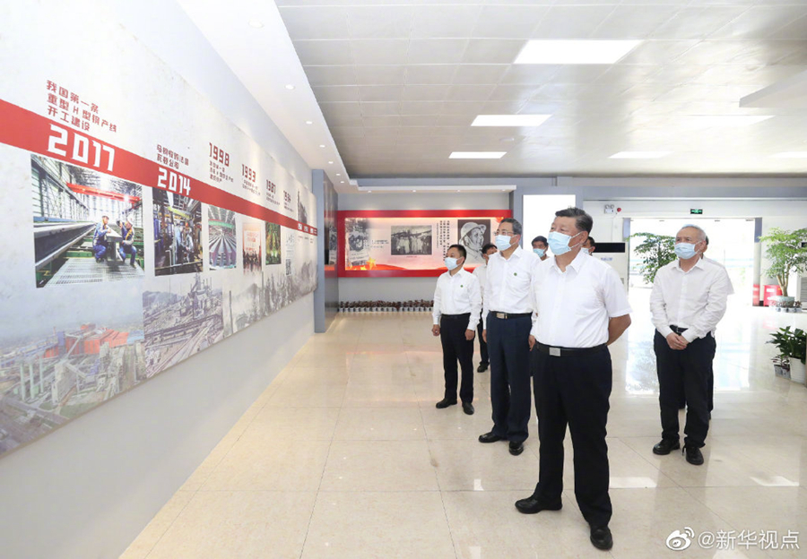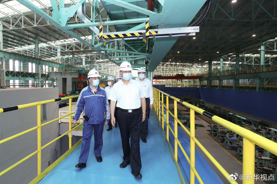 习近平总书记19日上午在安徽省马鞍山市考察调研。他首先来到薛家洼生态园,实地察看长江水势水情、岸线综合整治和生态环境保护修复等情况。随后,习近平前往中国宝武马钢集团,走进生产车间,了解企业复工复产和经营情况。(文字记者:张晓松 摄影记者:鞠鹏 王晔)