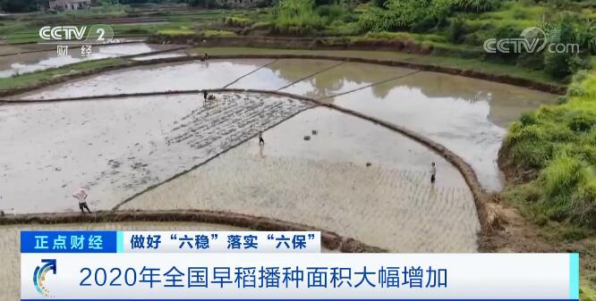 国家统计局相关负责人表示:今年早稻生产虽然受南方严重洪涝灾害的不利影响,单产有所下降,但得益于播种面积的大幅增加,全国早稻实现增产。据了解,2020年全国早稻播种面积7126万亩,比上年增加451.1万亩,增长6.8%。分地区看,10个早稻生产省份中有7个早稻播种面积增加。其中,湖南、江西、 广西、广东播种面积增加较多。夏粮丰收和早稻增产奠定了全年粮食稳定生产的基础,为全面落实“六保”任务提供了坚实的保障。 ?