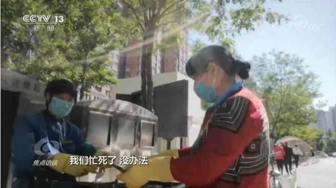 虽然说是这么说,可垃圾分类指导员还是从这位居民刚扔的垃圾中拣出了一些剩菜。这些垃圾分类指导员大多是小区的保洁人员,看见居民混投垃圾有时也不好多说,只能是自己将居民混投的垃圾分拣后,再重新投入垃圾桶,很多垃圾分类指导员就变成了垃圾分拣员。