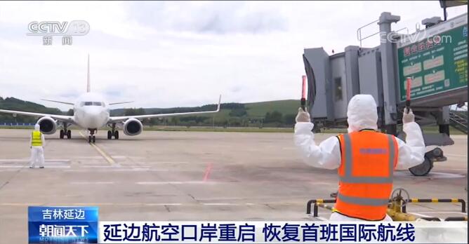 央视网消息:8月20日10时50分,由韩国大邱起飞的TW683次航班搭载着141名国际乘客平稳降落在延吉朝阳川国际机场,标志着已关闭144天的延边航空口岸正式恢复运营。