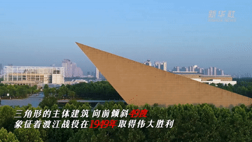 三角形的主体建筑,向前倾斜49度,象征着渡江战役在1949年取得伟大胜利。
