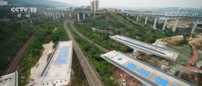 央视网消息:8月21日凌晨1时55分,重庆市快速路二横线项目跨渭井、蔡歌铁路主线桥在确保三条繁忙铁路正常运营的前提下完成五桥同转。