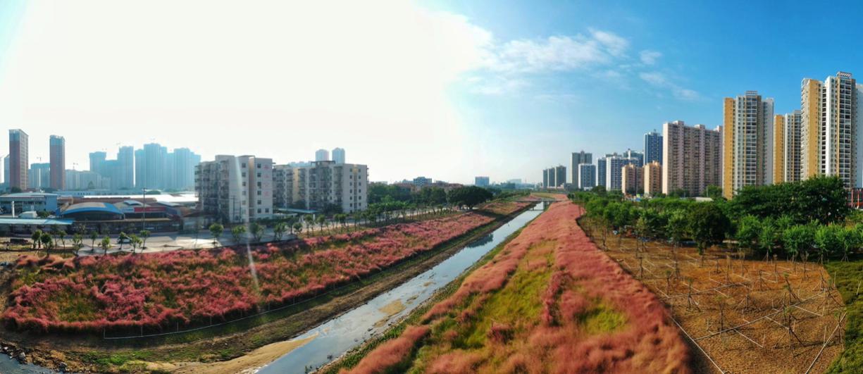 冯家江贯穿北海市区,北连通马栏河,向南汇入北部湾,流域面积68.5k㎡,中下游分布有大面积的红树林。冯家江承载着水质保障、生物迁徙通廊的重要生态功能,是贯通北海市廉州湾及北部湾海域的生态绿廊,也是城市主要排涝河道。