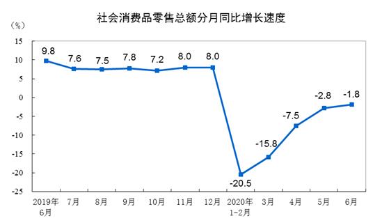图为社会消费品零售总额分月同比增长速度(来源:国家统计局)