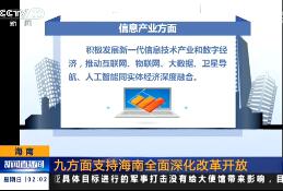 本期节目主要内容: 海南全岛建设自由贸易试验区;海南建省办经济特区30周年;美英法对叙利亚实施军事打击;中央气象台:南方多地降暴雨,14日起减弱;关注第八届北京国际电影节。