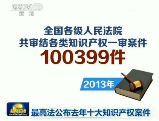 去年,全国各级人民法院审结各类知识产权一审案件总的数量为100399件,这里面民事一审案件总的数量为88286件、行政一审案件总的数量为2901件、刑事一审案件总的数量为9212件,分别和2012年相比提高5.29%、0.07%以及降低28%。
