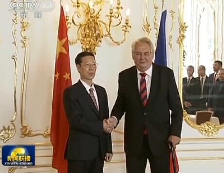 国务院副总理张高丽昨天于布拉格参加第二次中国-中东欧国家地方领导人会议同时做出讲话,参与会议期间和捷克总统泽曼、总理索博特卡举行见面会。
