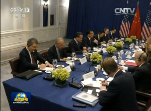 国务院总理李克强当地时间19日下午在纽约会见美国总统奥巴马。双方就中美关系和共同关心的重大国际和地区问题广泛、深入交换了意见。