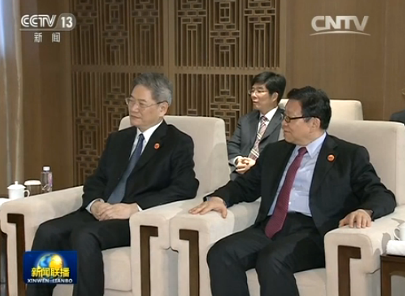 中共中央政治局常委、国务院副总理张高丽24日下午在海南博鳌会见了出席博鳌亚洲论坛2017年年会的台湾两岸共同市场基金会荣誉董事长萧万长一行。