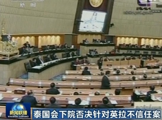 泰国的国会下议院在11月28号对于反对党提出来对于总理英拉和内政部长乍鲁蓬的不信任案予以了否决。