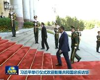 国家主席习近平5日上午在人民大会堂北大厅举行仪式,欢迎刚果共和国总统萨苏对我国进行国事访问。