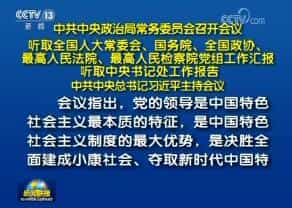 中共中央政治局常务委员会召开会议 听取全国人大常委会、国务院、全国政协、最高人民法院、最高人民检察院